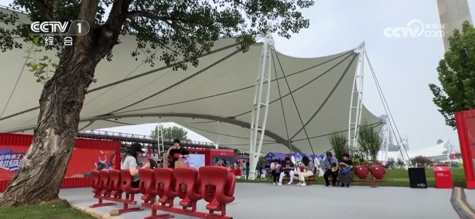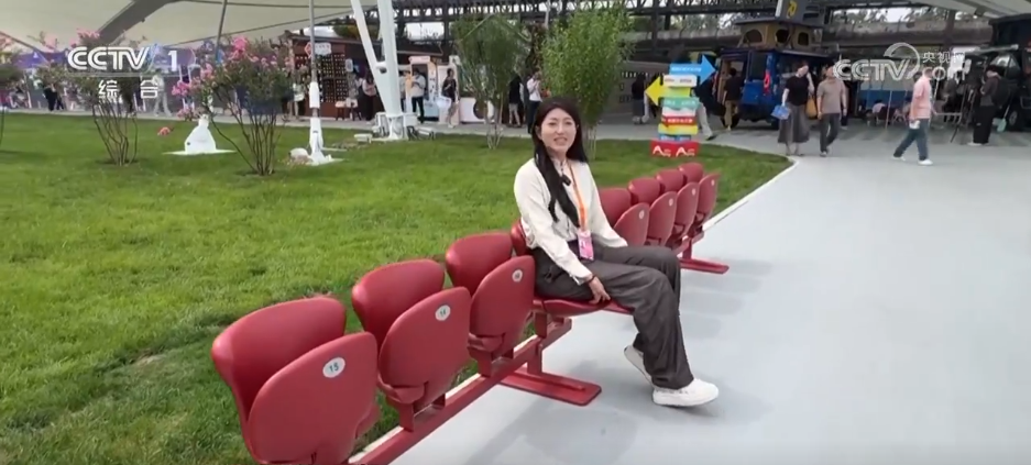 这儿是2025服贸会的野外展区,与绿色大草坪构成“撞色”的一抹夺目“城墙红”是否很眼熟?没错,它正是前不久留念活动中广场暂时观礼台的座椅。饯别“节俭办会”的理念,它们被搬来了这儿,持续完结价值,为参展游客供给时间短歇脚的当地。奇特的是,它们在投入到正常的运用中时并不是特别需求额定装置,是因为作业人员在座椅收回之初就进行了改造。加装钢板底座,宛如两个大大的脚蹼,座椅放在这儿天然结实又安全。作为第一批座椅复用场景之一,首钢分配到1508把座椅首要散布在大跳台和记者地点的服贸会区域。